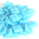 Deze matjes zijn op papier gelijmd. Als je ze in het water legt, weken de glazen steentjes er vanzelf af.